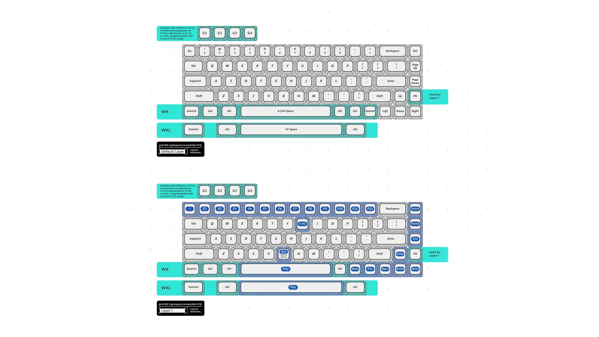 *F1-F4 keys can be configured for our QMK PCB and LS PCB in 2.4G mode.
